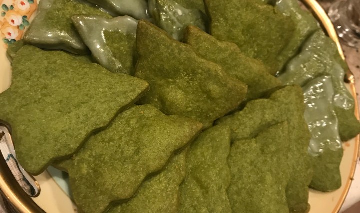 I made shortbread cookies that are colored and flavored with matcha green tea powder! Continue reading Green Tea Trees for NYE! (Bonus – tinfoil hat)